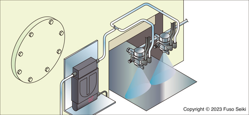In industries that have strict production controls, such as the automobile industry, manufacturers of assembled products sometimes require precise numerical measurement of the amount of lubricant applied. In such cases, using a liquid flow meter in conjunction with an automatic spray gun makes it possible to “visualize” the discharge amount for each shot of spray (depending on the type and viscosity of the liquid, the use of a flow meter may not be possible).